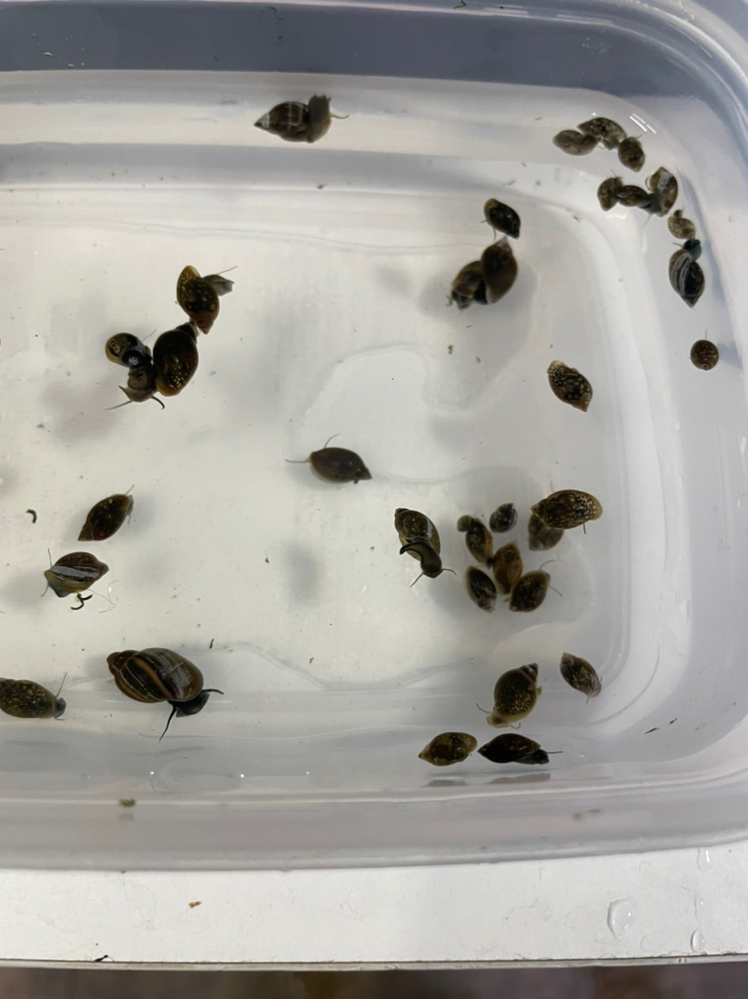 能登川博物館のブログ:メダカが卵を産みました! 朱赤透明鱗。