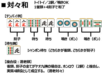 対々和 トイトイホー- 2翻役 - 麻雀役 麻雀王国。
