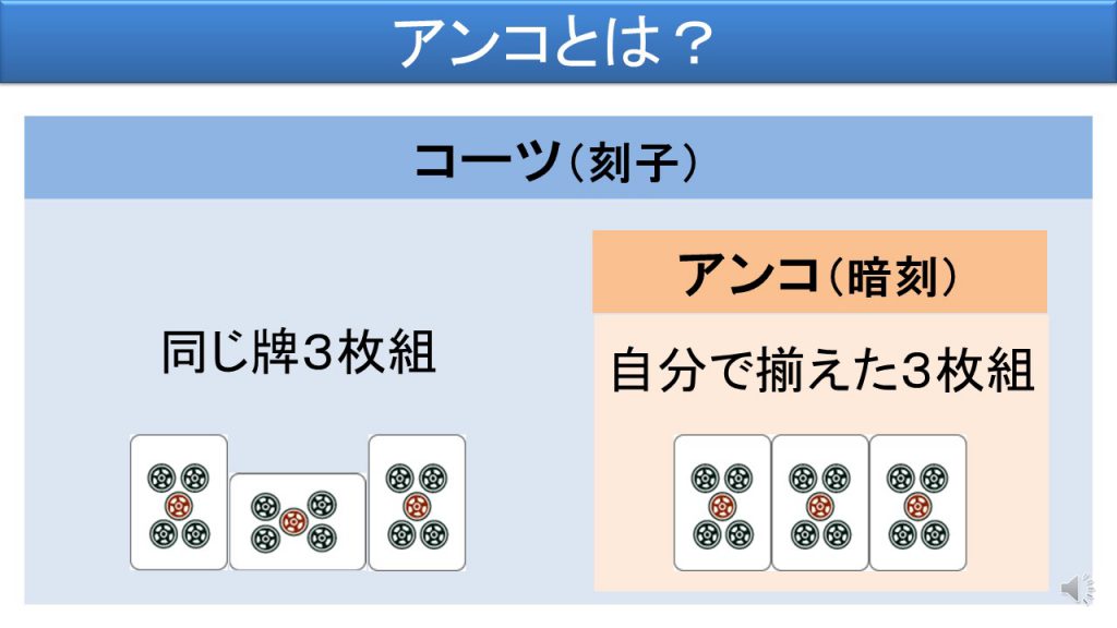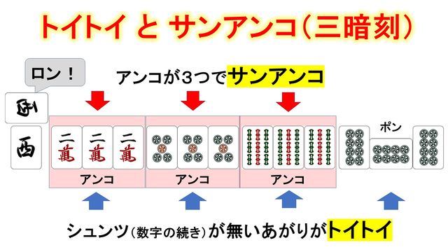 サンアンコー 三暗刻 とは!メンゼンでトイトイと複合すると?麻雀の役とルールのおもしろ超解説~まあまあジャンジャン~。