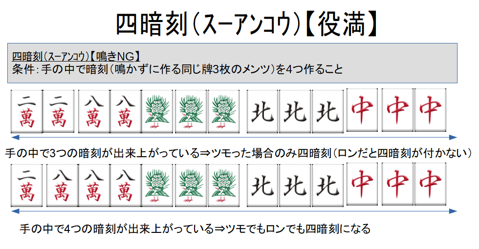 Mリーグ準拠 スーアンコウ 四暗刻世界一わかりやすい解説麻雀ポータル.com。
