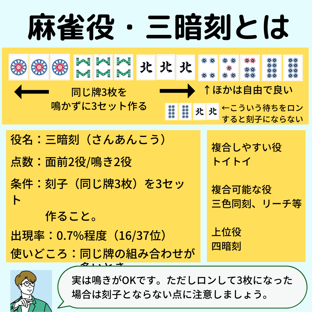 三暗刻 サンアンコー - 麻雀役麻雀初心者のための「雀入門」。
