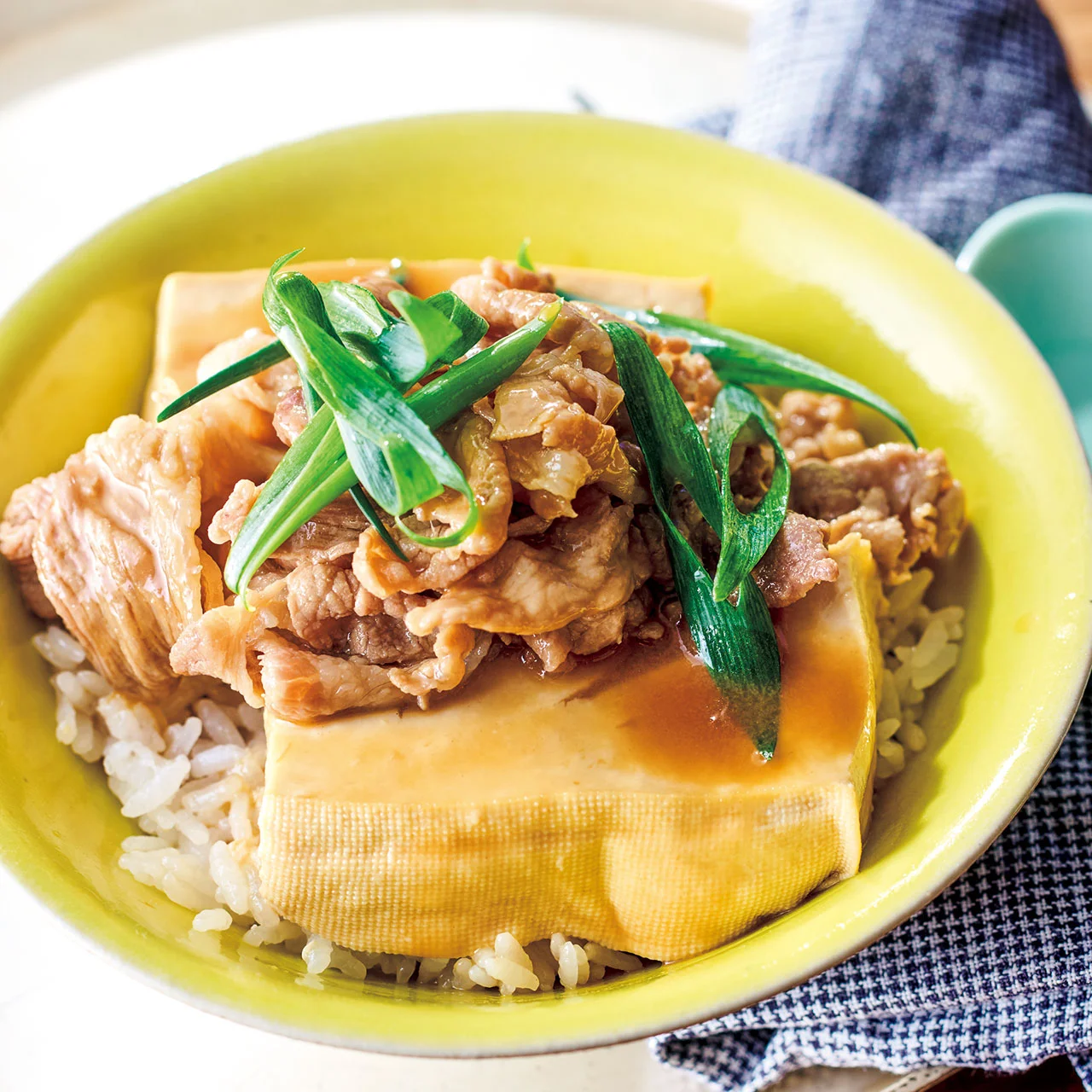 らくちんでボリューム満点!肉豆腐の甘辛丼。