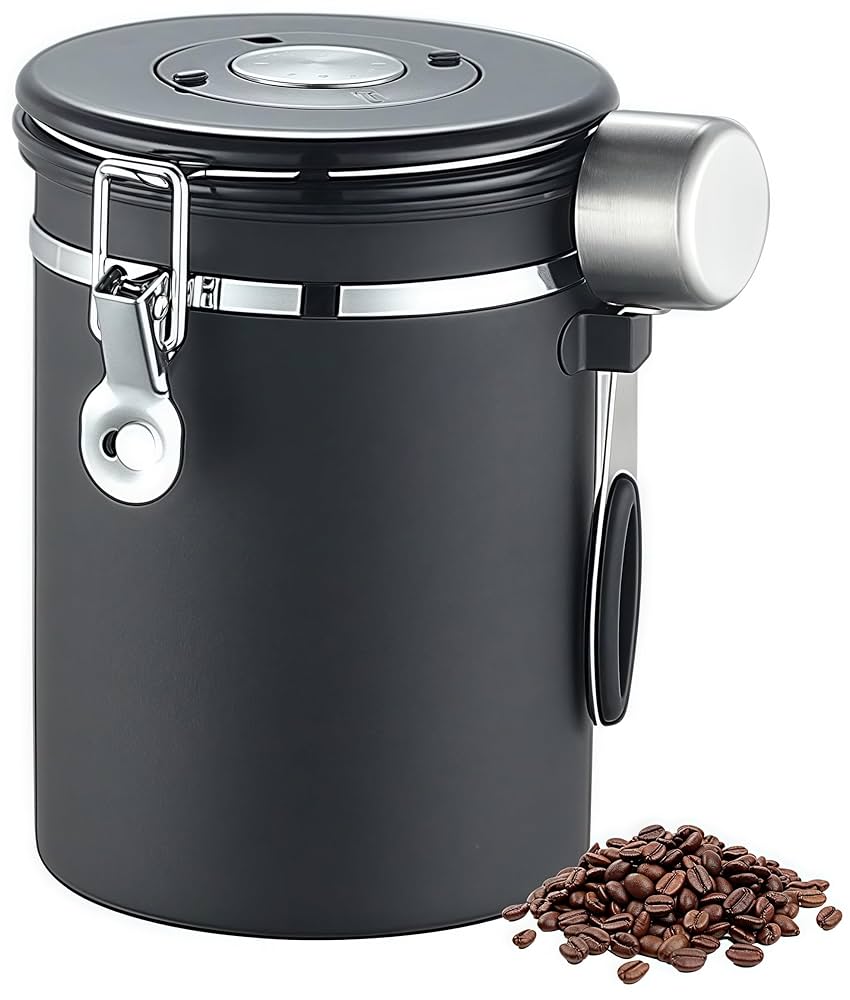 AmazonFACIACC コーヒーキャニスター 1800ML コーヒー豆密封缶 密閉式コーヒー缶 ステンレス密閉タンク 大容量 日付表示ダイヤル排気バルブ&計量スプーン付き コーヒー豆保存容器缶 コーヒー密閉容器 食品保存容器 茶筒 お菓子 糖 香料 防湿保存缶 丸型 鮮度保持 酸化防止。