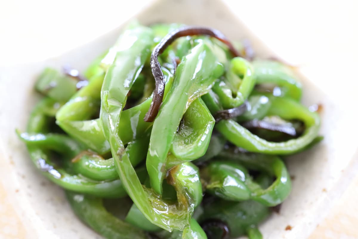 電子レンジですぐできる「ピーマンと塩昆布のレンチン和え」。
