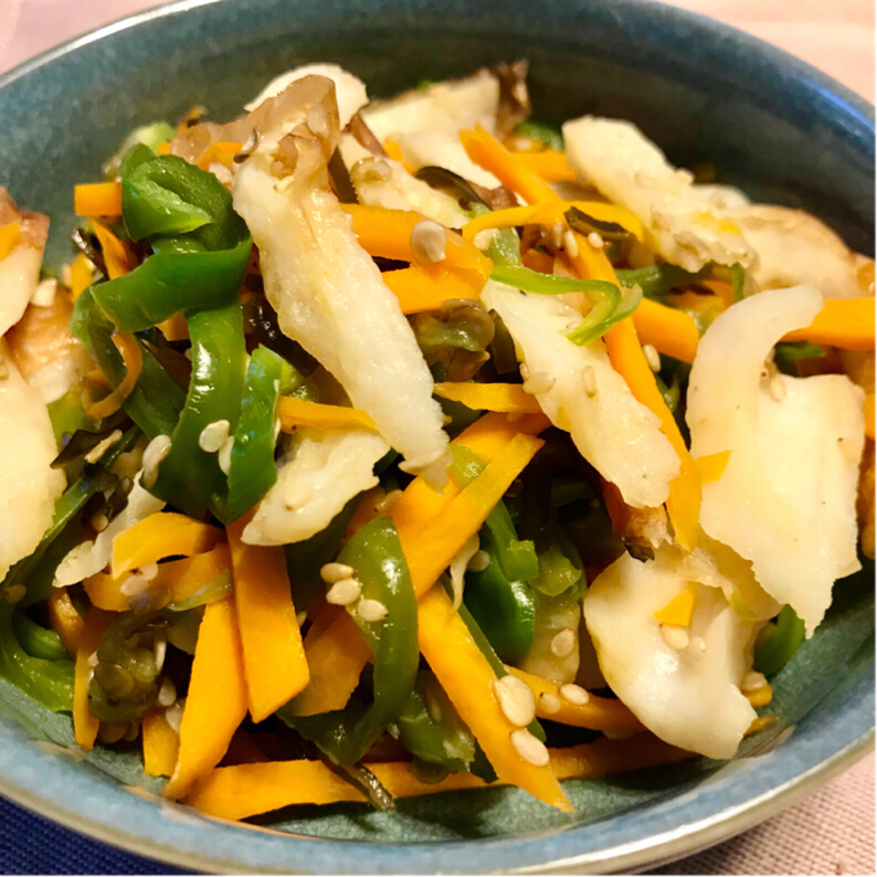 レンジで簡単!ピーマンとちくわと生姜の塩昆布和え。