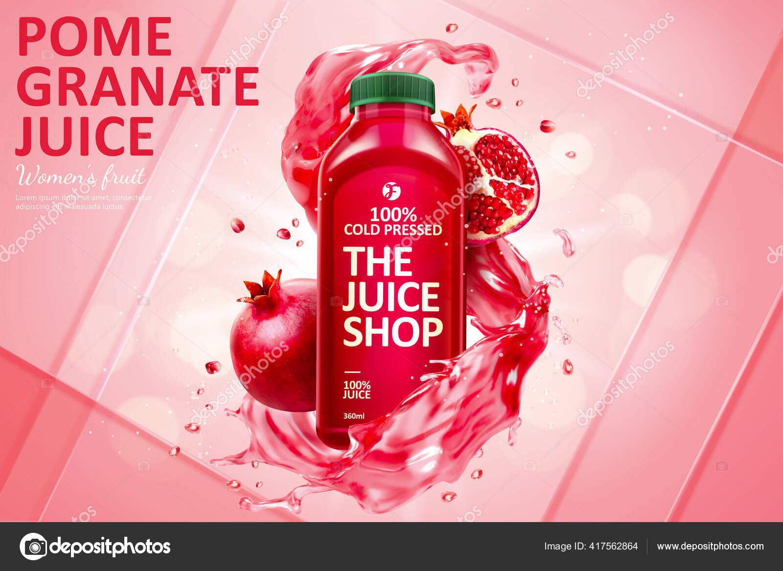 ボトルと果物を使ったリアルなザクロジュースパッケージ広告デザイン」のベクター画像素材 ロイヤリティフリー1377626453Shutterstock。