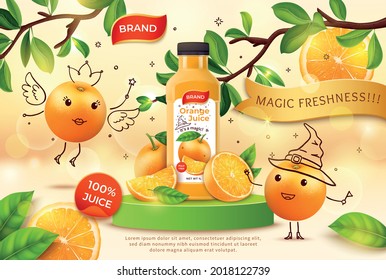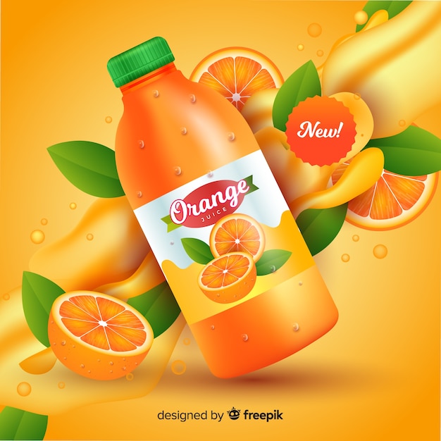 現実的なオレンジジュースの広告無料ベクトル素材。