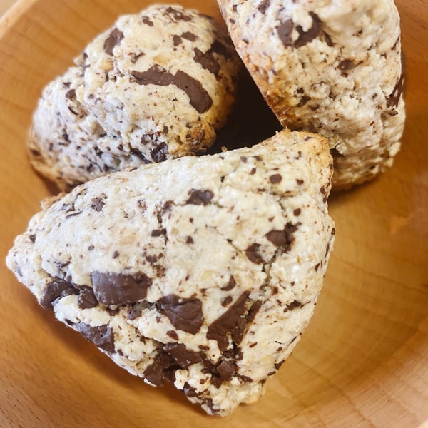 オートミールで簡単すぎ♪♪お店みたいなチョコチャンクスコーン。