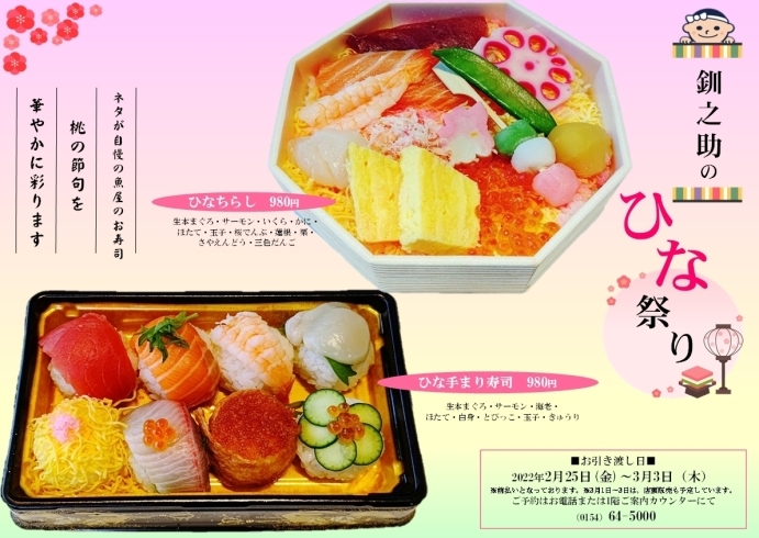 ひなちらし・ひな手まり寿司 予約開始!釧之助 本店のニュースまいぷれ 釧路。