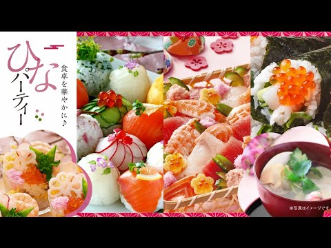 ▽3月3日はひなまつり!家族そろって、おいしい・楽しいお祝いを! 詳しくはこちら! http:goo.gl gL2uzl ♪みんな一緒にひなまつりパーティ♪パーティにぴったり!みんなで一緒に、おいしいお寿司を取りそろえ! - まぐろ・サーモン・玉子などを詰め合わせた「彩り。