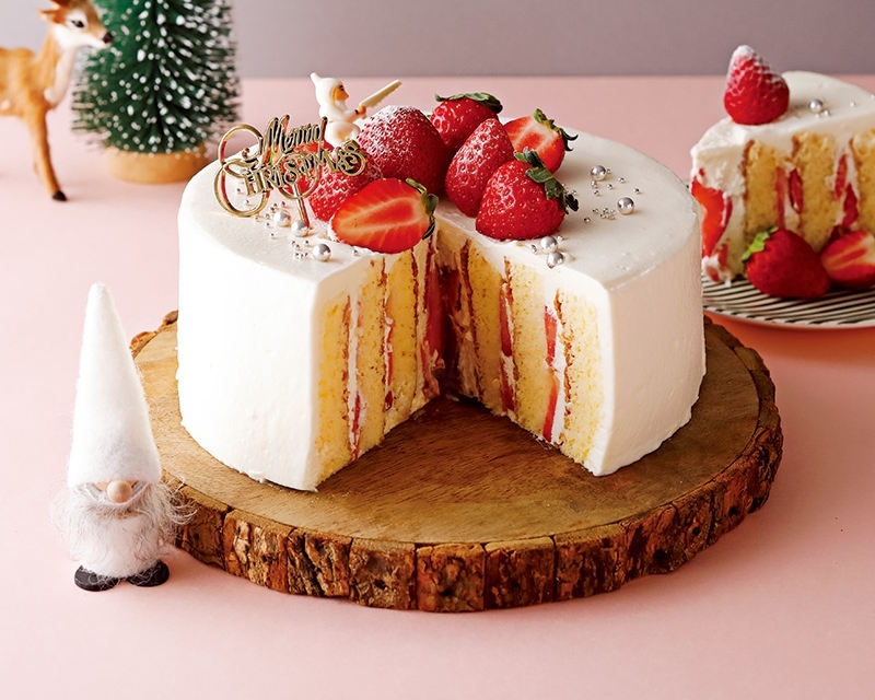 苺がたっぷり!苺の断面が見えるクリスマスケーキ♪。