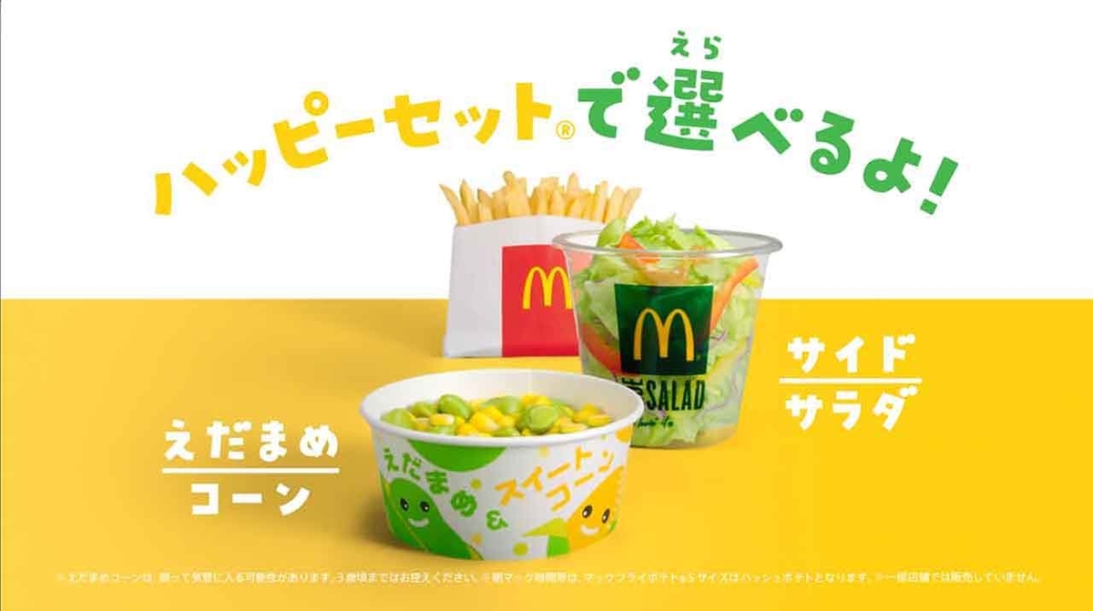 マクドナルド ハッピーセットがリニューアル! 枝豆コーン・ヨーグルトなどサイドメニューが4つから選べるようにAppBank。
