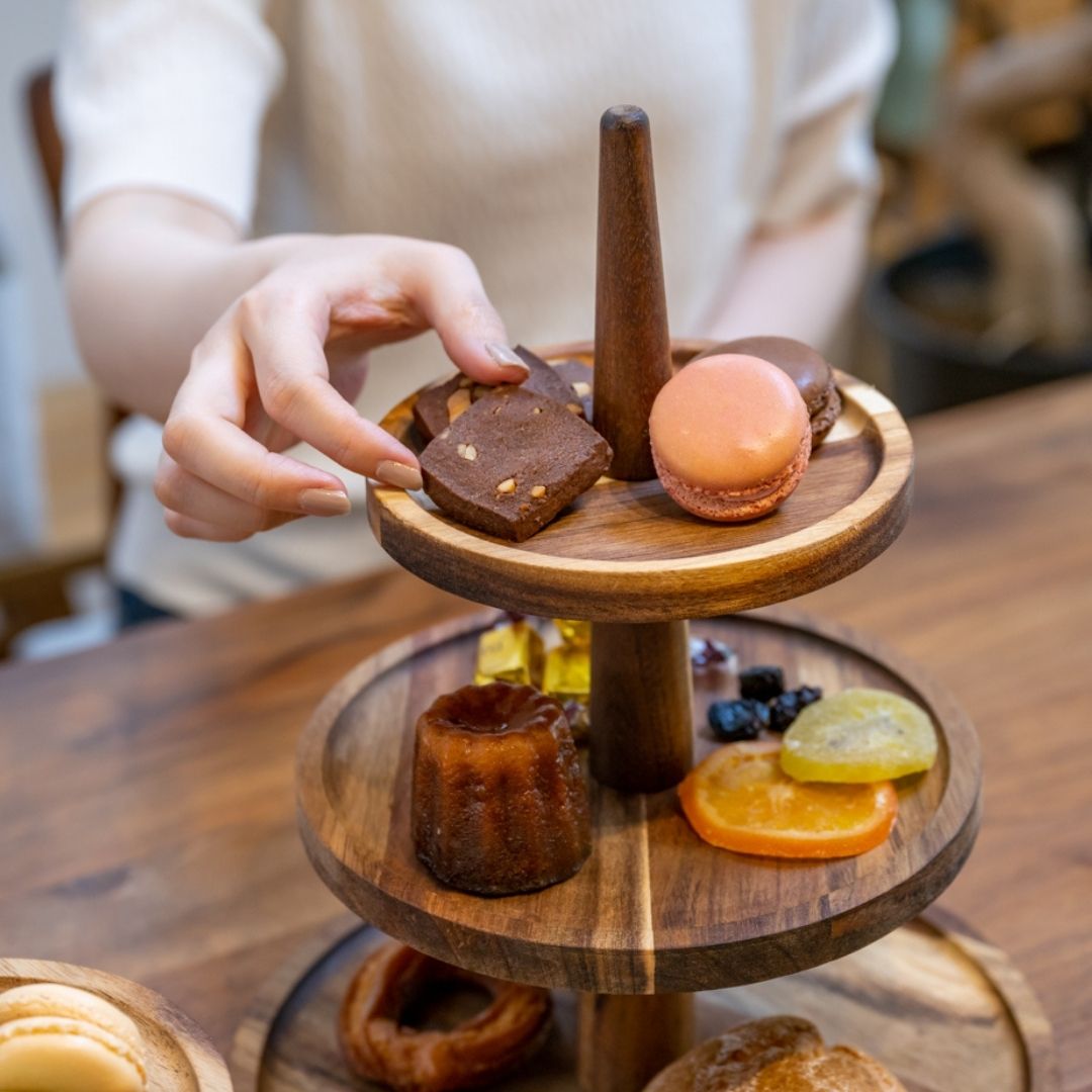 多層ケーキスタンド、パーティー用ディスプレイ台 ? 婚礼やイベントに適したスリム設計、省スペースで装飾的なケーキトレイ ケーキスタンド 木 通販ウッドコンポート 18.5cm コンポート 皿 ケーキ台 木製 ディスプレイ 小物置き インテリア 脚付きトレイ おしゃれ。