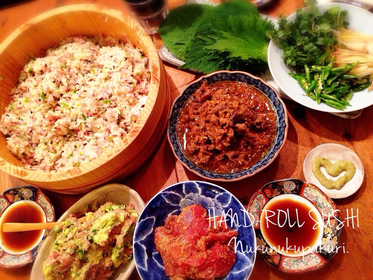 変わりネタで手巻き寿司〜アボカドねぎとろに青唐辛子は最高ぉ〜!肉も魚も巻き巻きひな祭り〜 : ぬくぬくぱくり。