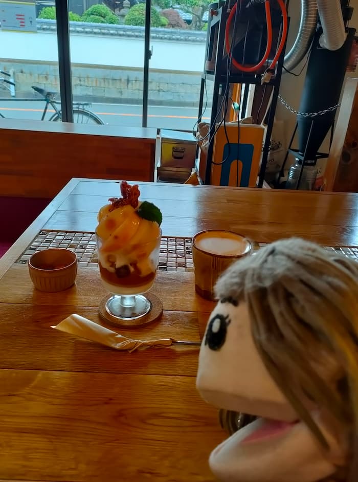 猿とモルターレ桃パフェ包近の桃カフェカフェ巡り古民家カフェ古民家岸和田市。