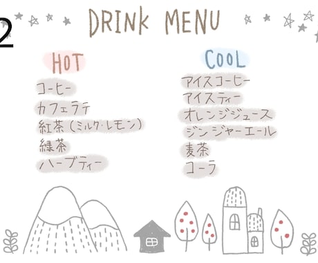 北欧風◎ほっこり可愛いドリンクメニュー表作成します 格安でインテリアとしても映えるかわいいメニュー表です。ココナラ。
