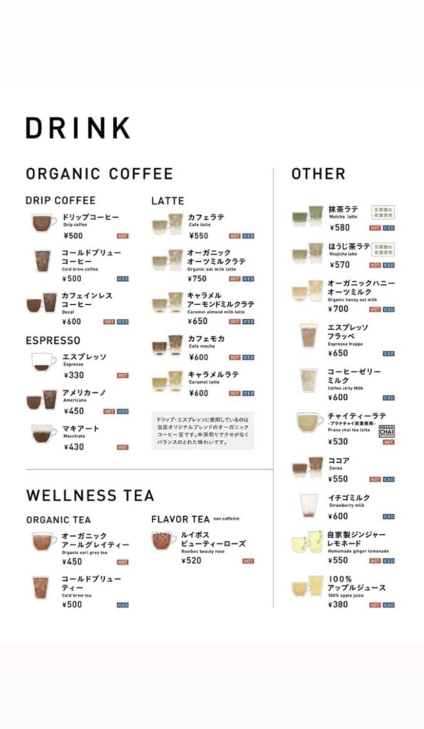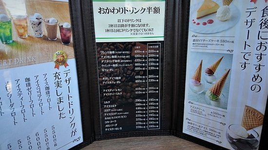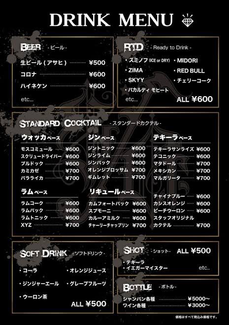 ドリンクメニュ。