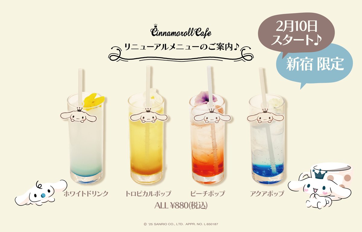 シナモロールカフェ 公式on X: "👑メニューリニューアルのご紹介☁️ 新宿店限定! お子さまも楽しんでいただけるポップやフレンズが登場する ドリンクなどお見逃しなく💙 サラダは具材が盛り沢山! チーズとサクサクのコーンフレークがアクセントに 😋 2 10より提供。