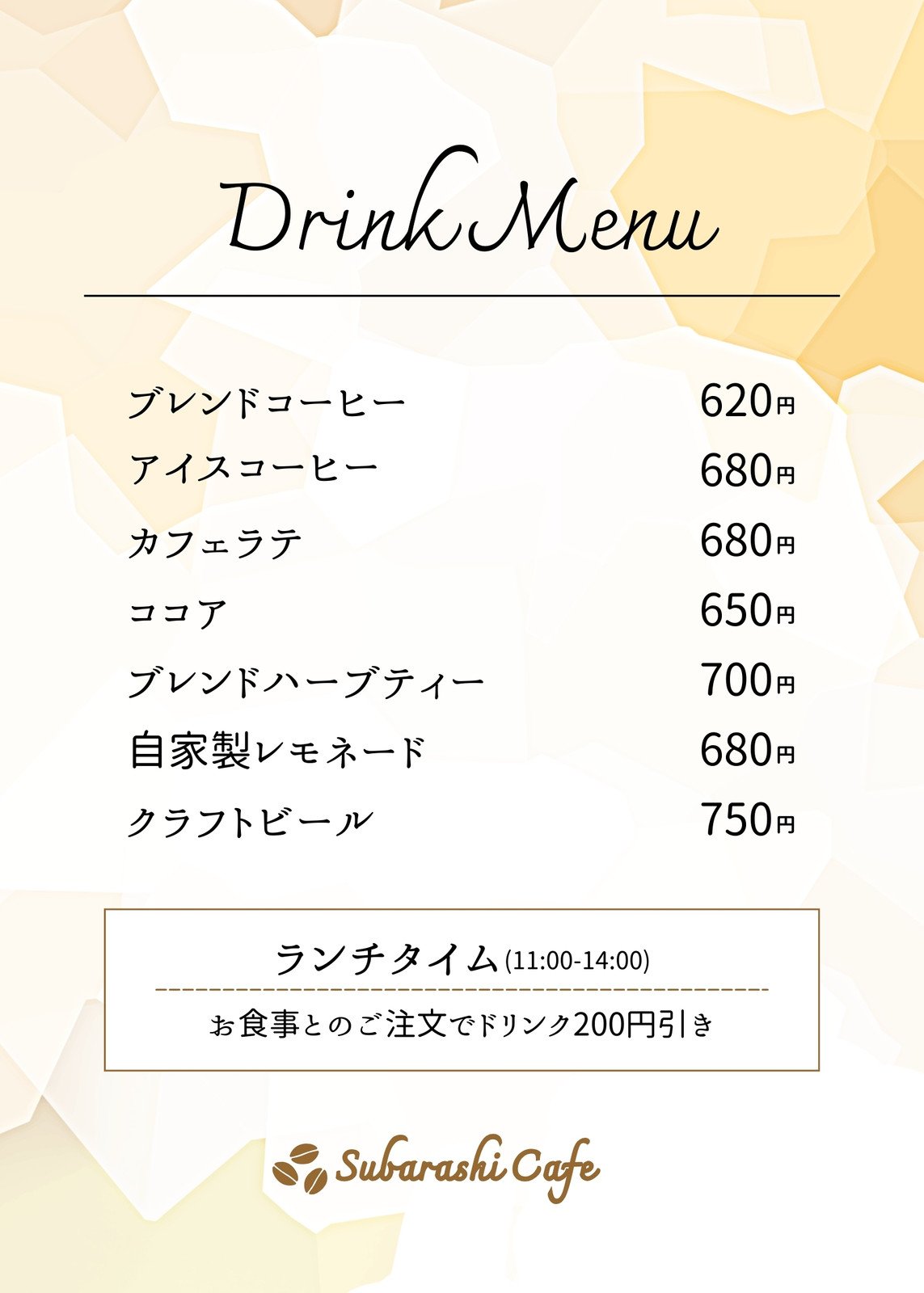 無料ドリンクメニューテンプレートでおしゃれにデザインCanva。
