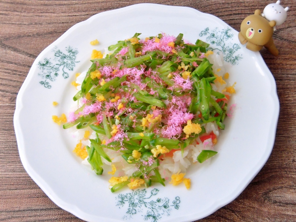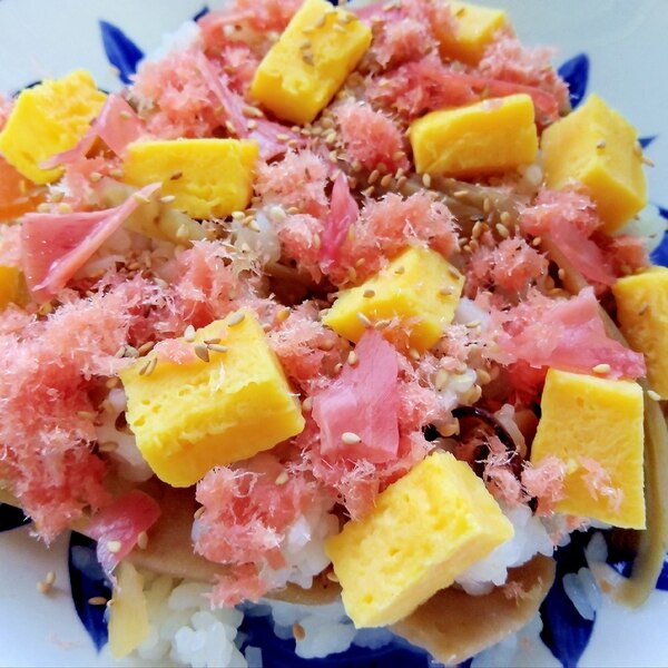 お花見に✿桜でんぷ&玉子焼きの簡単ちらし寿司。