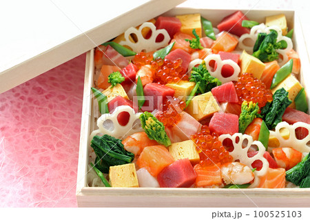 お花見 海鮮ちらし寿司 ばらちらし寿司 花ちらし寿司の写真素材100525103- PIXTA。