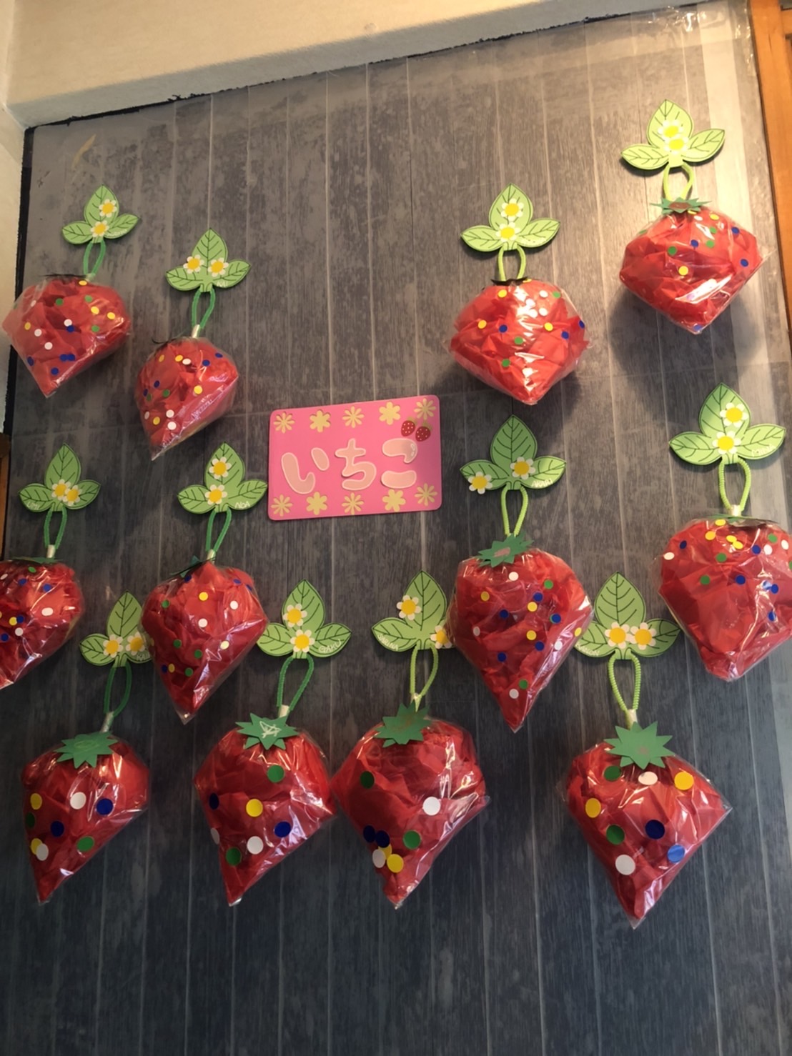 いちご製作活動で保育室壁面の簡単な作り方男性保育士あつみ先生の保育日誌 おすすめ絵本と制作アイデア。