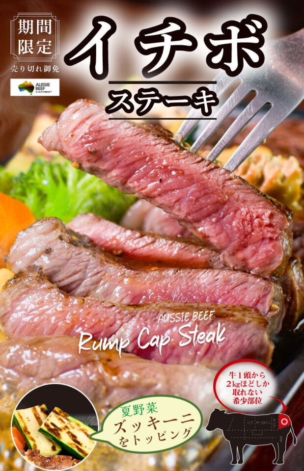 大人気のステーキが今年も登場!期間限定 オーストラリア産「イチボステーキ」いきなり!ステーキ全店で販売!いきなり!ステーキ。