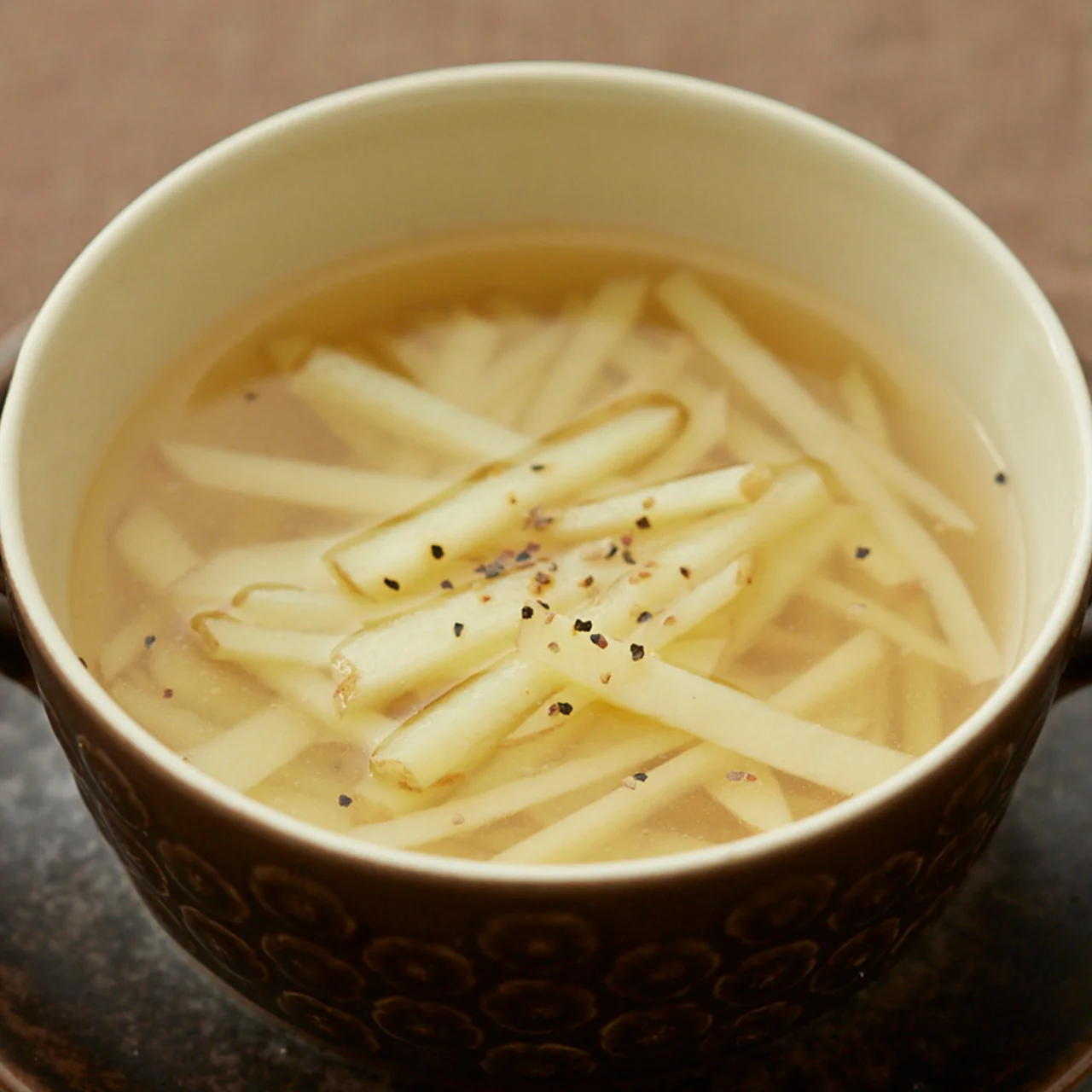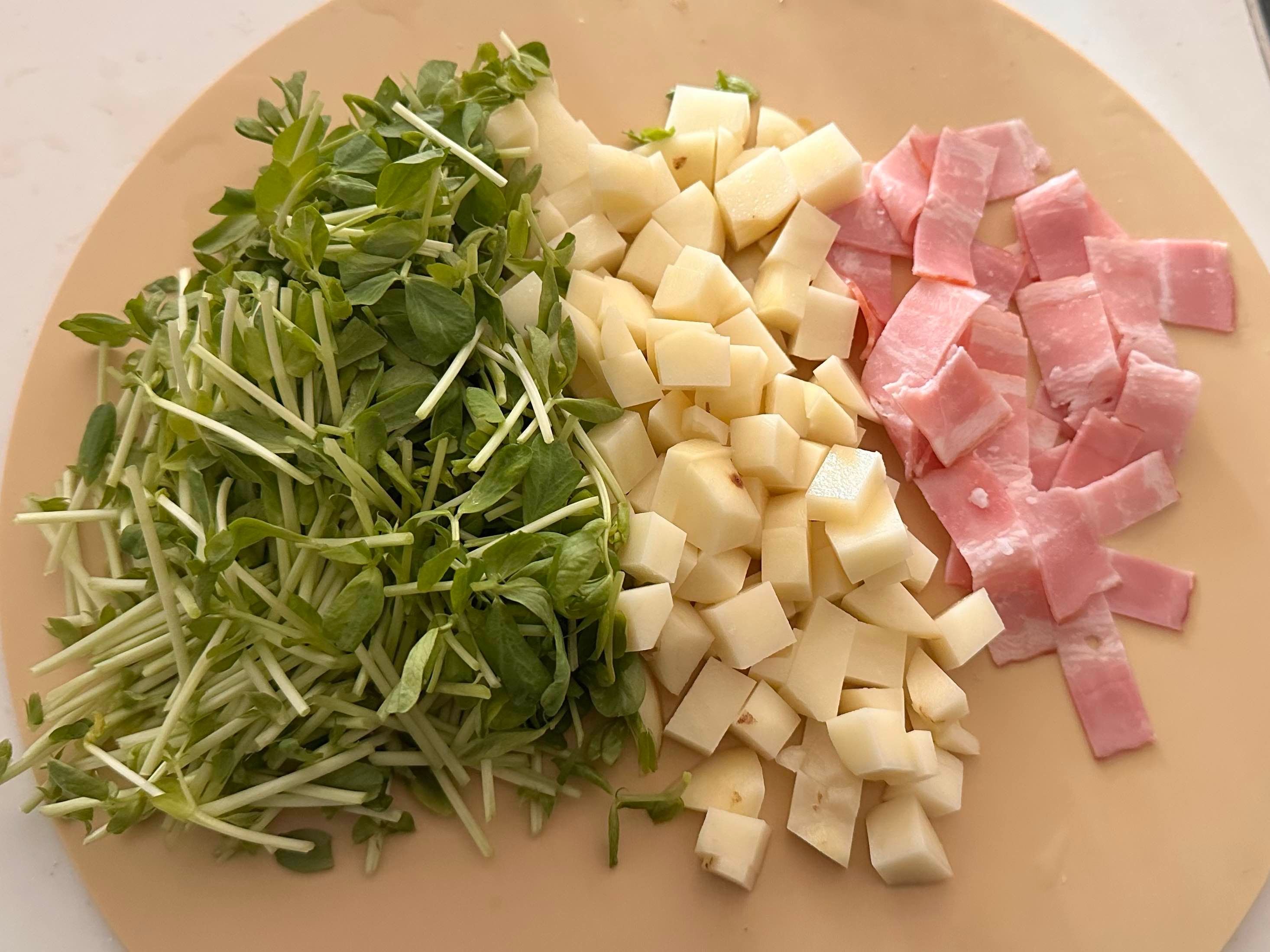 すぐできる⭐豆苗とじゃがいものコンソメスープ。