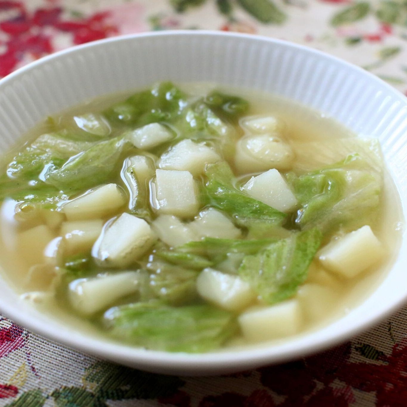 コスパ最強♩豆苗とじゃがいものコンソメスープ。