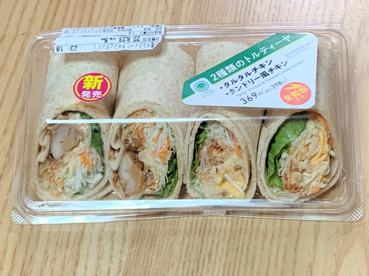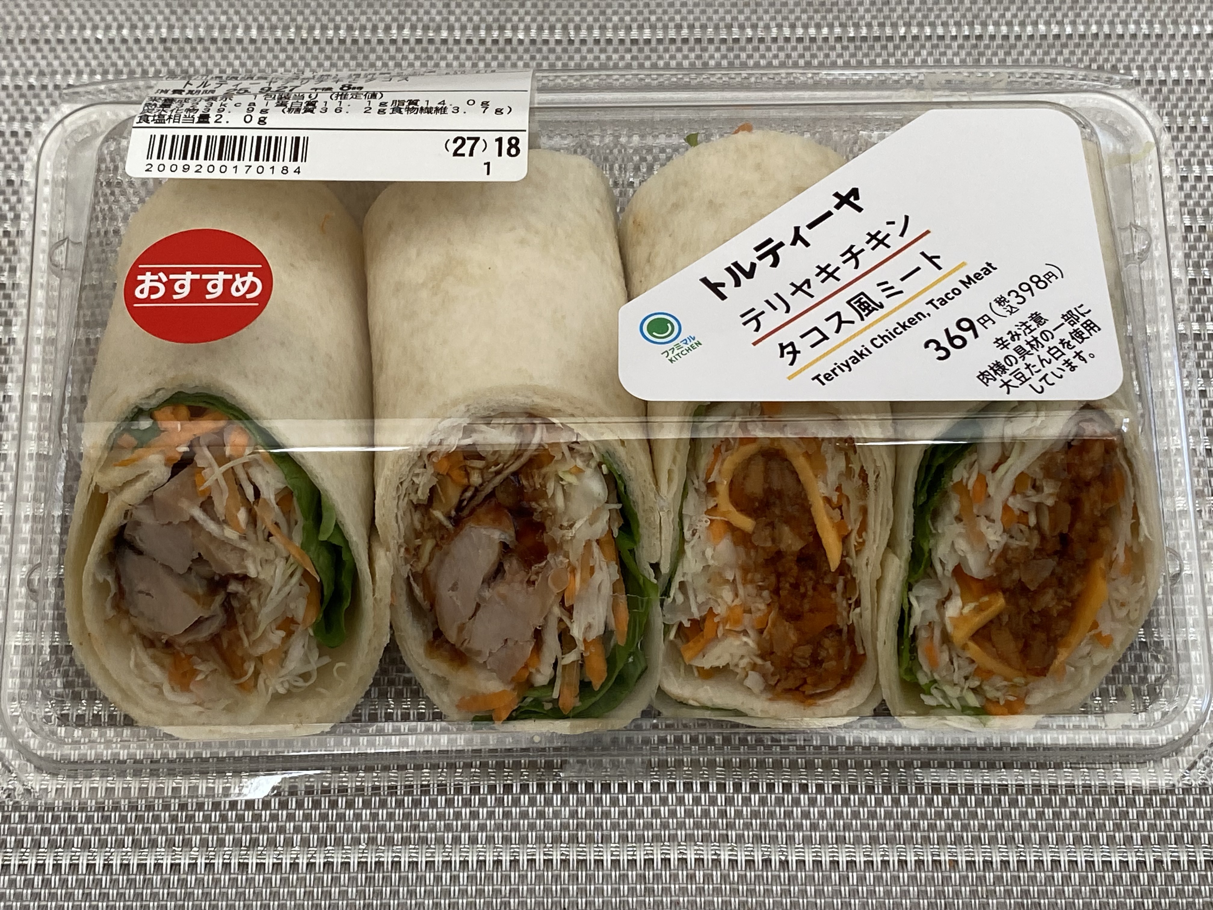 山口弘光 on X: "今日のお昼ごはんは、ファミマのおすすめ商品「トルティーヤ テリヤキチキン タコス風ミート」だ!チキン とタコス風ミートがそれぞれ2個ずつだ!どちらの具もイイ感じだ!美味。323 kcal。トルティーヤは好きだ!https:t.co 7qfzcG1QRH"X。