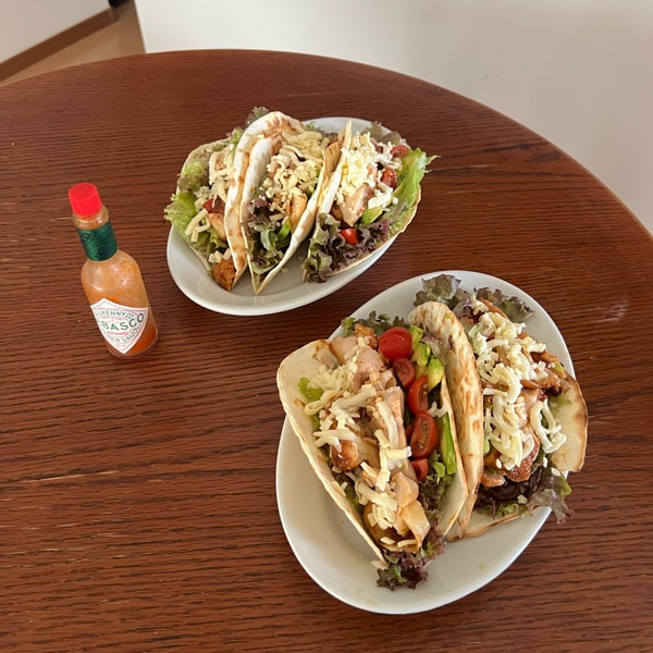 お家でも簡単に♪ スパイシーチキンのタコス。