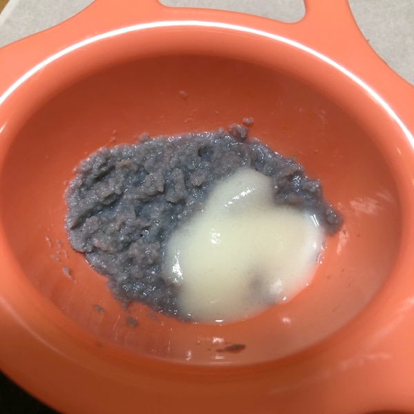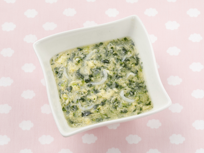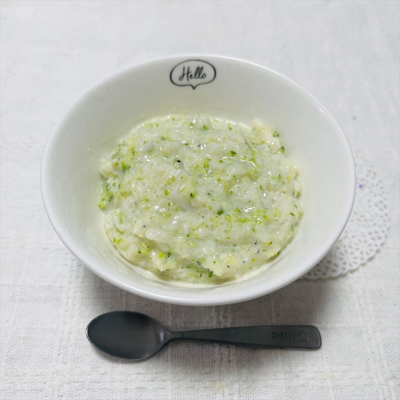 離乳食中期 ブロッコリーとしらすのミルク粥。