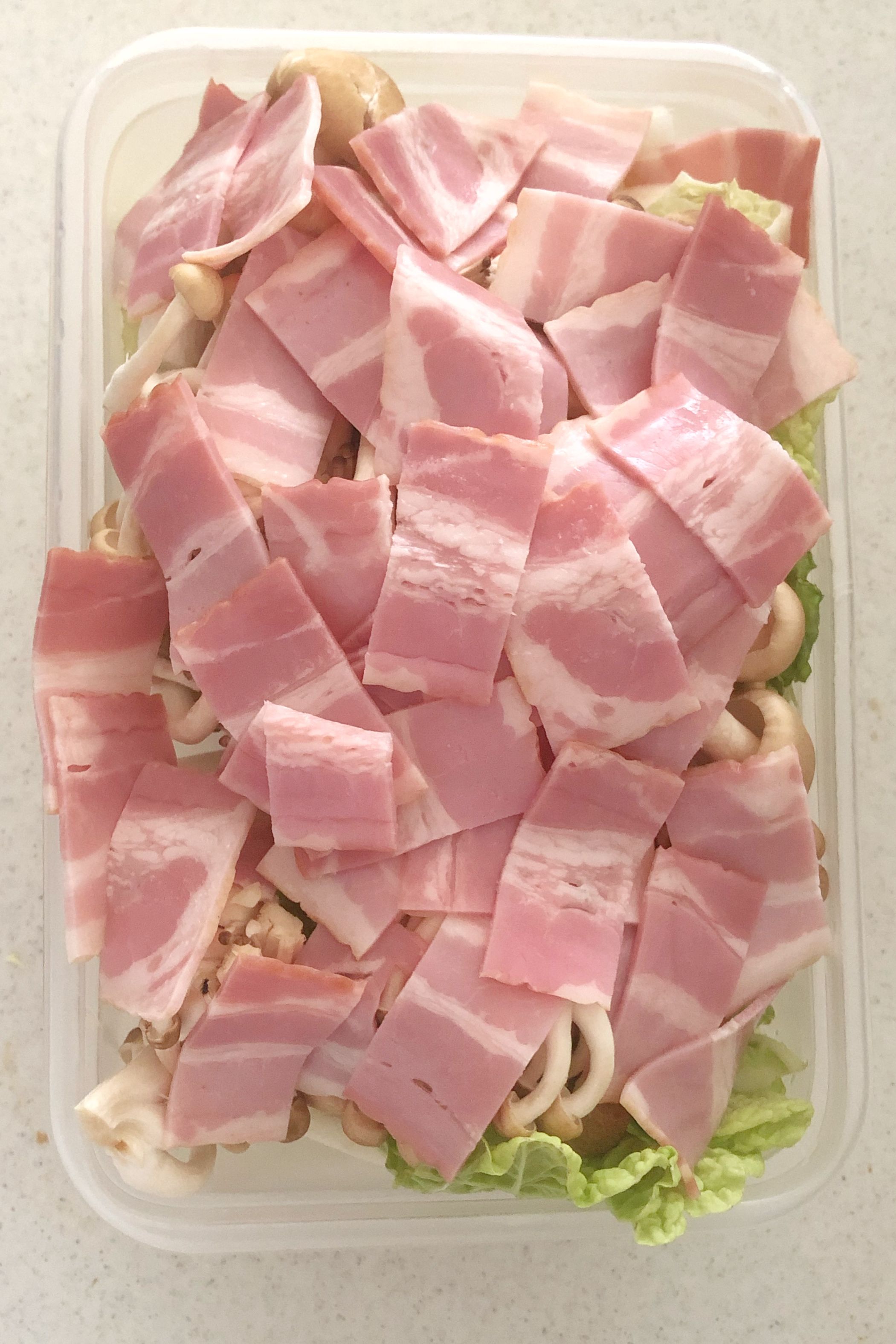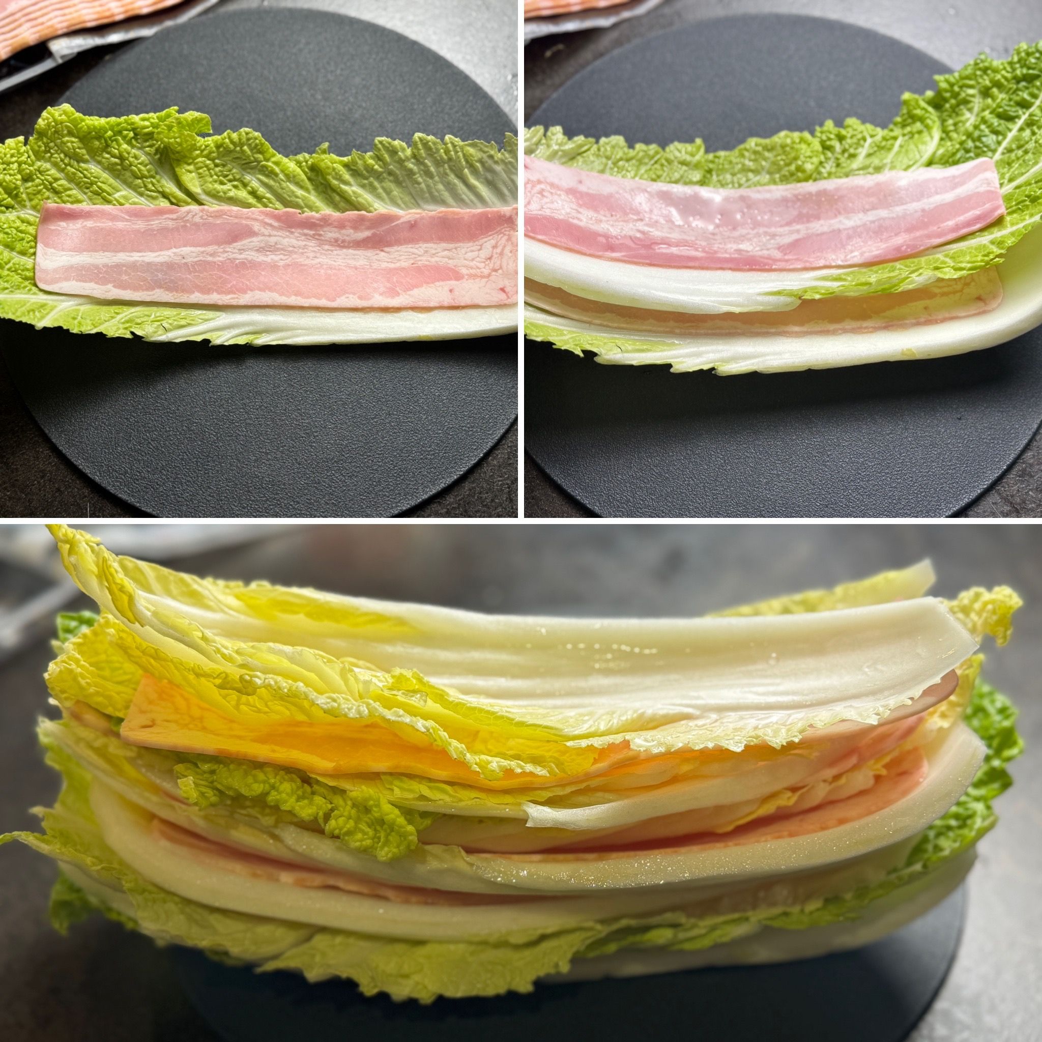 白菜とベーコンの重ね蒸し 電子レンジで簡単♪。