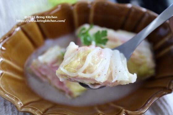 まるでロールキャベツの味! 白菜ベーコンチーズのコンソメ煮 ねもっち。