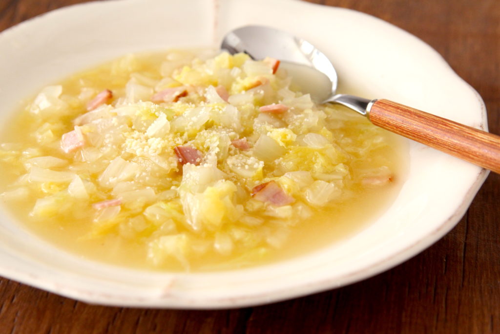 レンジで簡単!低カロリーで温まる「白菜とベーコンのスープパスタ」 - 朝時間.jp。