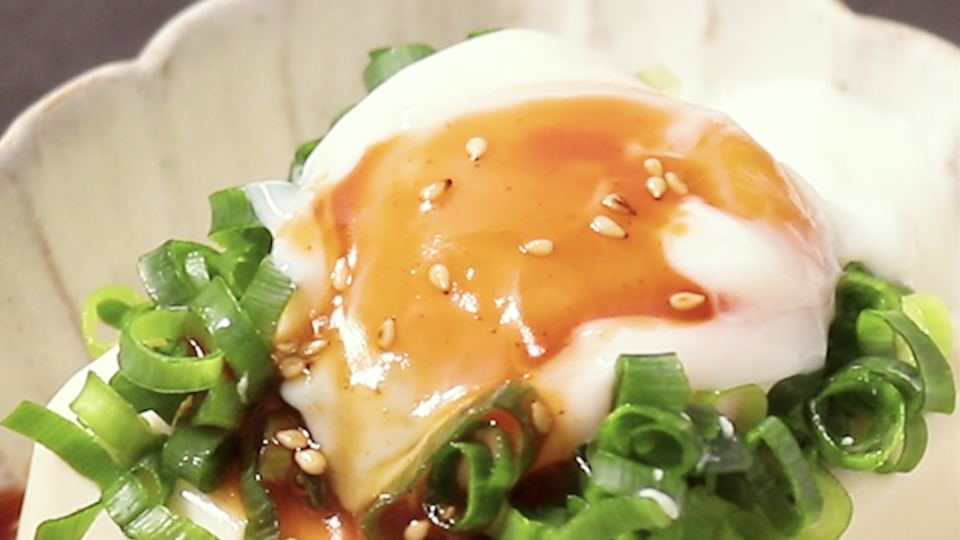 温泉卵を電子レンジ50秒で簡単に作るレシピ。