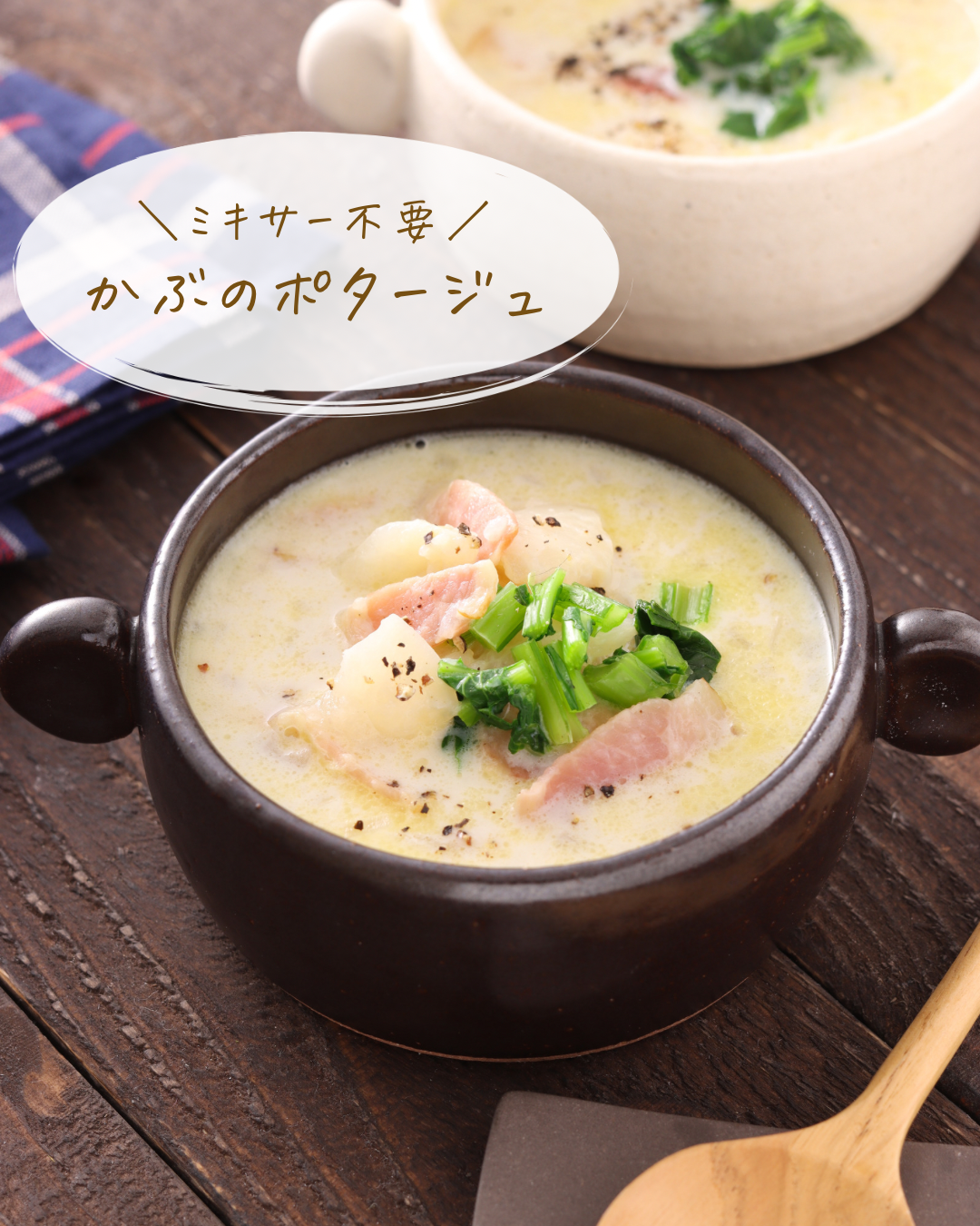 たった1つの具材と塩麹でかぶの優しい豆乳ポタージュ。