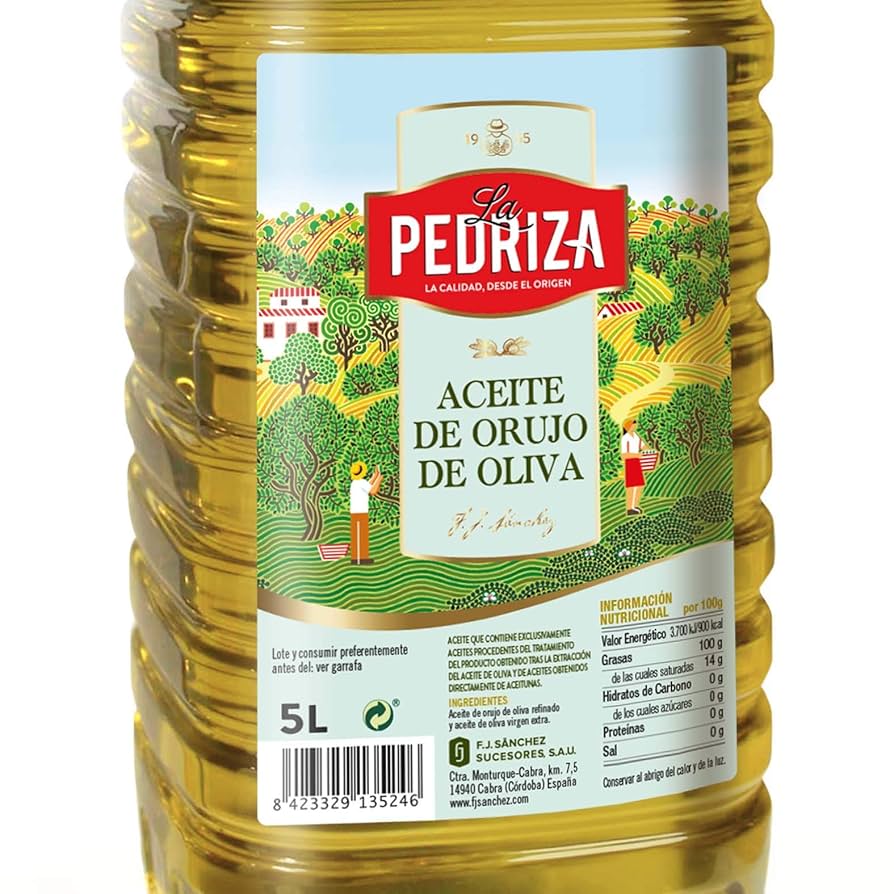 5 lペットボトルのオリーブポマスオイル、アモリバ食用油95% 精製ポマース & 5% バージンオリーブオイル。