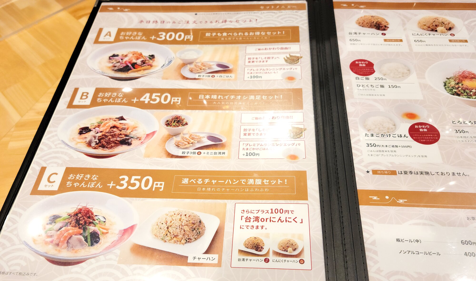 お品書き - セットメニュー日本晴れ岡崎ラーメン。