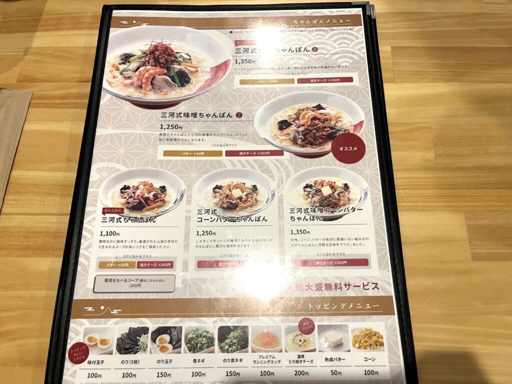 三河ちゃんぽん日本晴れ 岡崎北店 メニュー (426 無料写真)