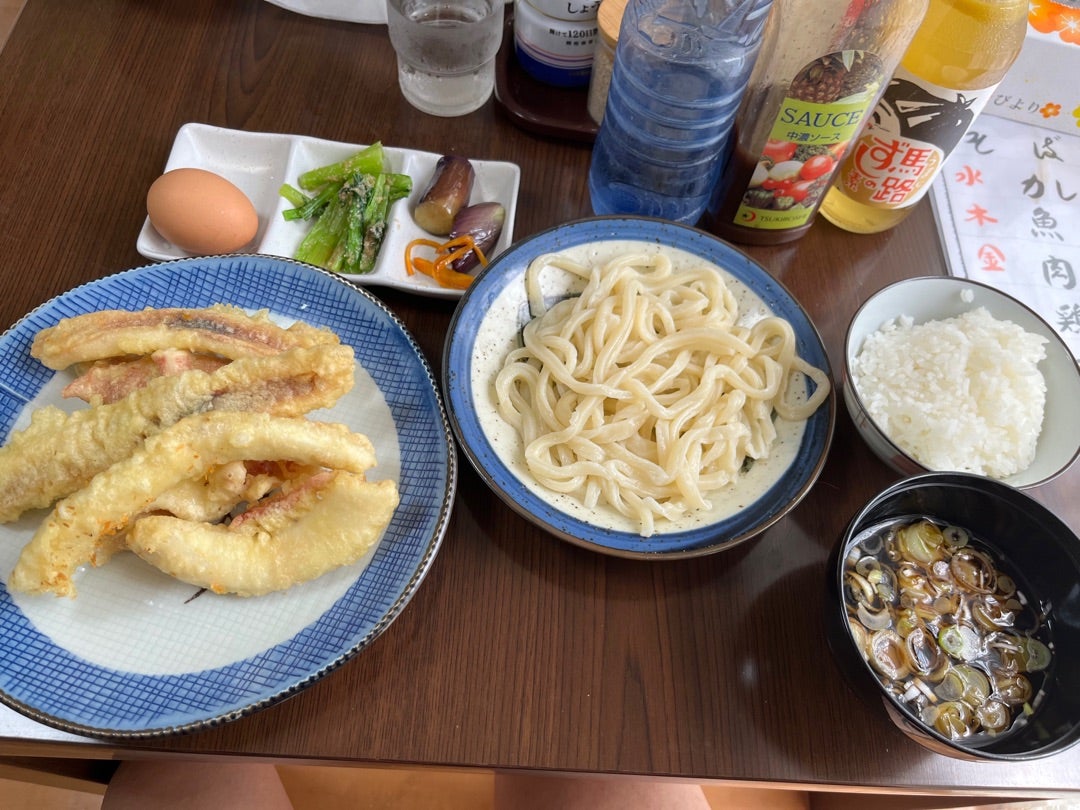 せっちゃんうどんほぼ実家?オモウマい店で食べるうどん天付と日替わりメニュー 伊勢崎市安堀町。