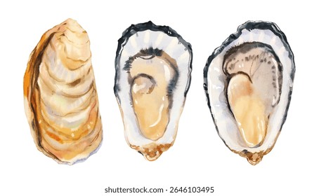 水彩画の背景に新鮮な牡蠣のイラストのイラスト素材・ベクター Image 230156404。