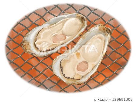 冬が旬!リアルな焼き牡蠣炭火焼のイラスト素材129691309- PIXTA。