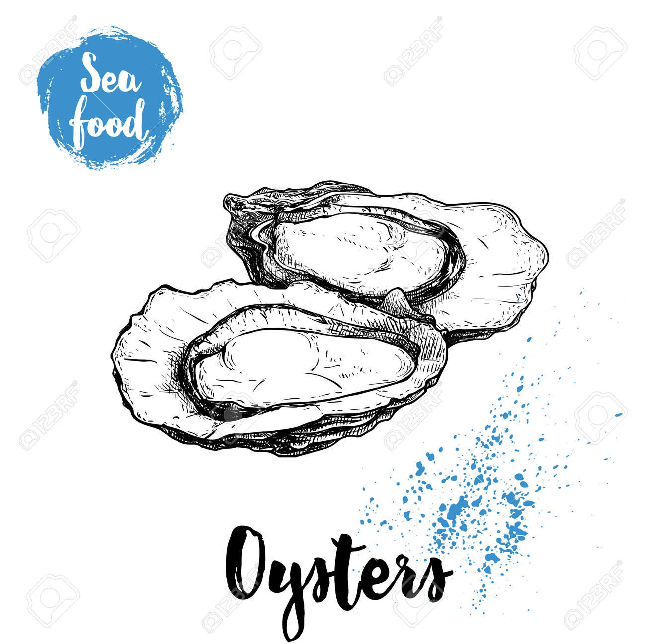 ○手描き開き牡蠣、スケッチスタイルイラスト。のイラスト素材・ベクター Image 96623131。