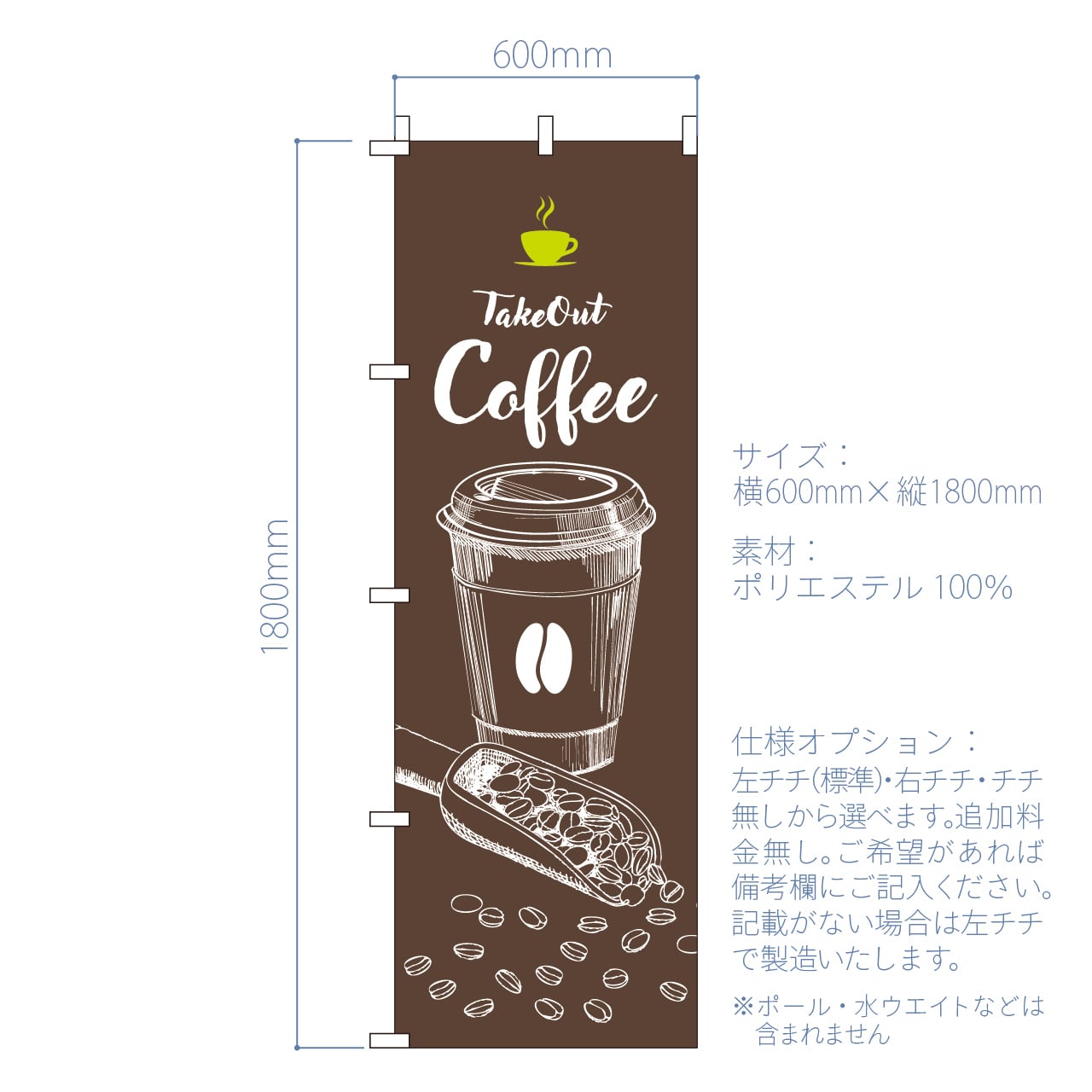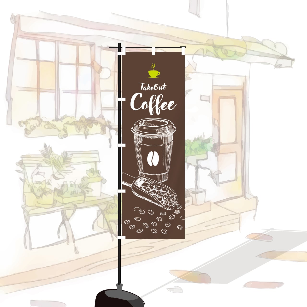 カフェ コーヒー coffee cafe 喫茶店 テイクアウト Take Out お持ち帰り のぼり旗 おしゃれ のぼり オリジナルデザイン1枚から購入可能Pay ID。