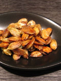 レンジde揚げ焼き風カボチャの種オツマミ。