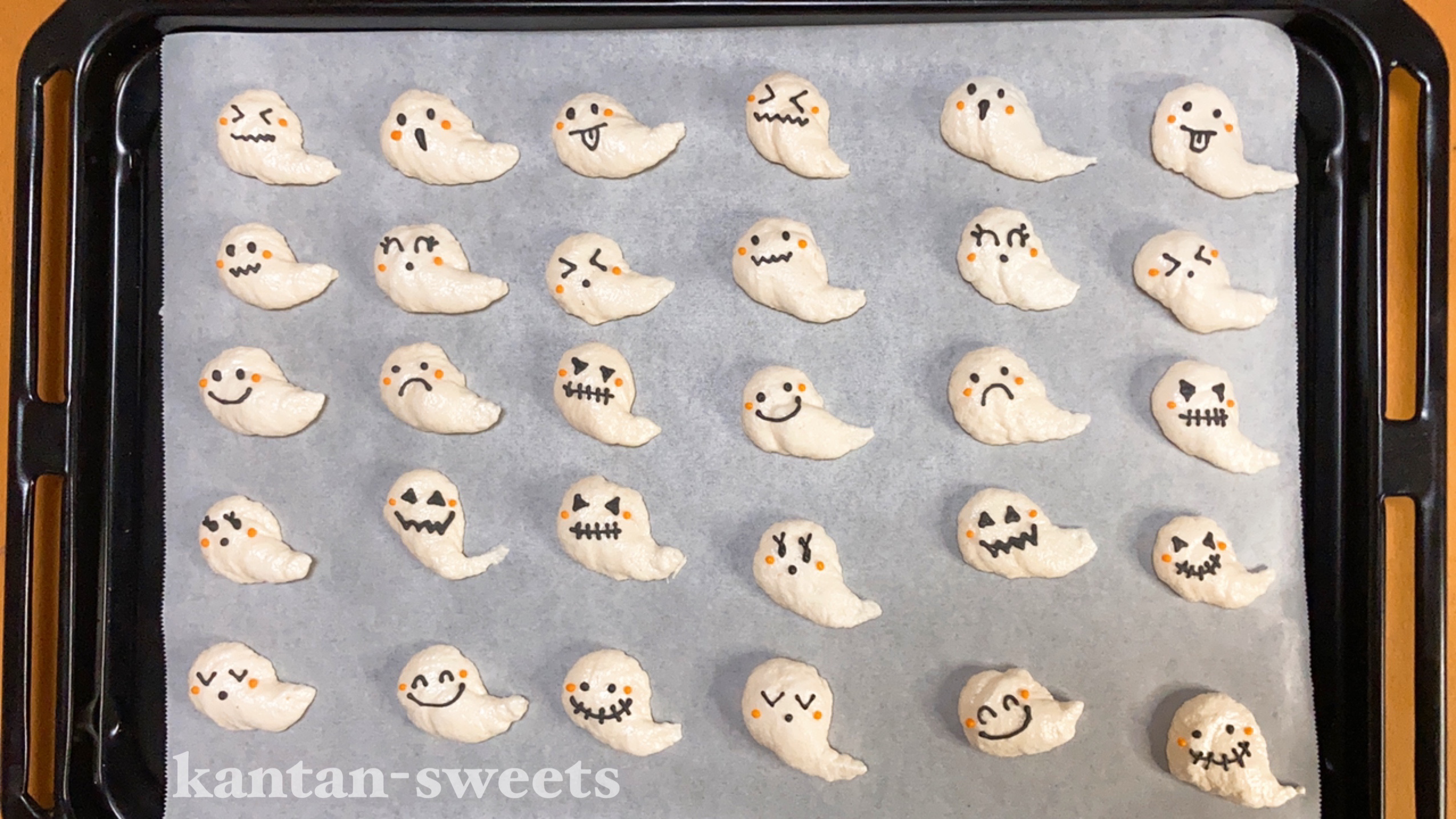 おばけメレンゲクッキーの作り方 ハロウィンパーティーに!Ghost Meringue Cookie RecipeOyatsu Lab。