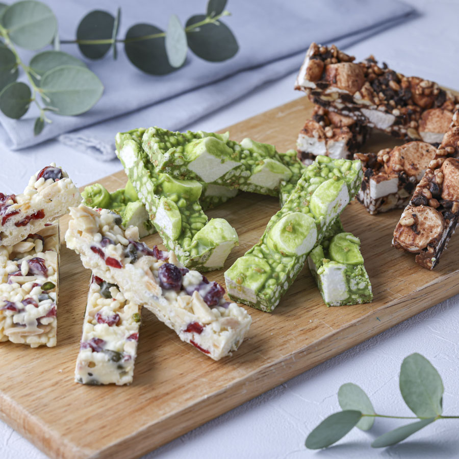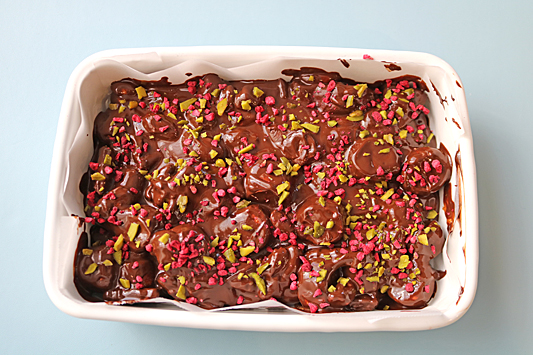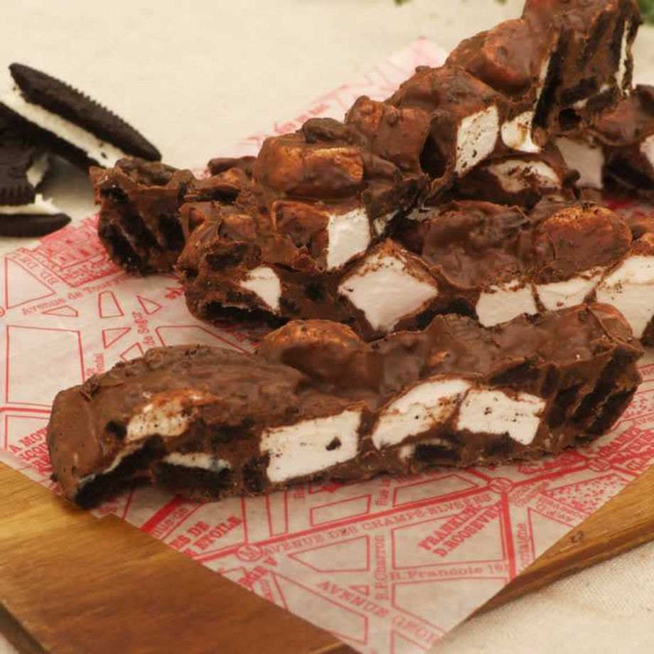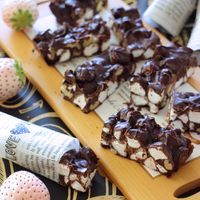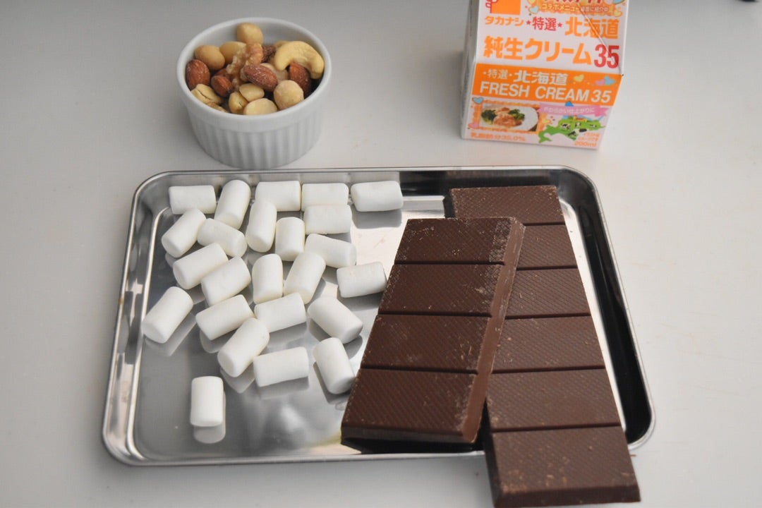マシュマロとナッツのチョコレートバースイーツレシピ。