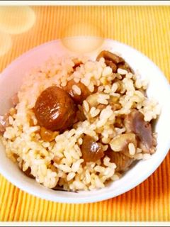 3合炊き炊飯器で! 牛肉と甘栗の炊き込みご飯。