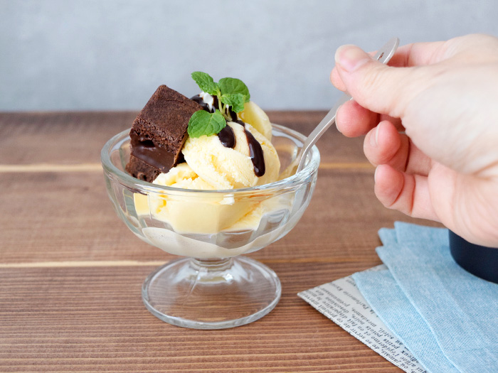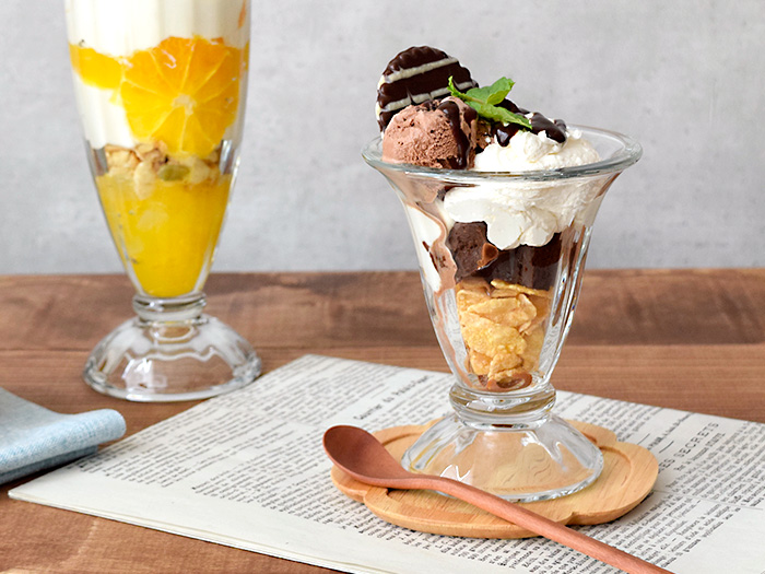 あっという間にプチパフェが完成!涼しくておしゃれなデザート食器。